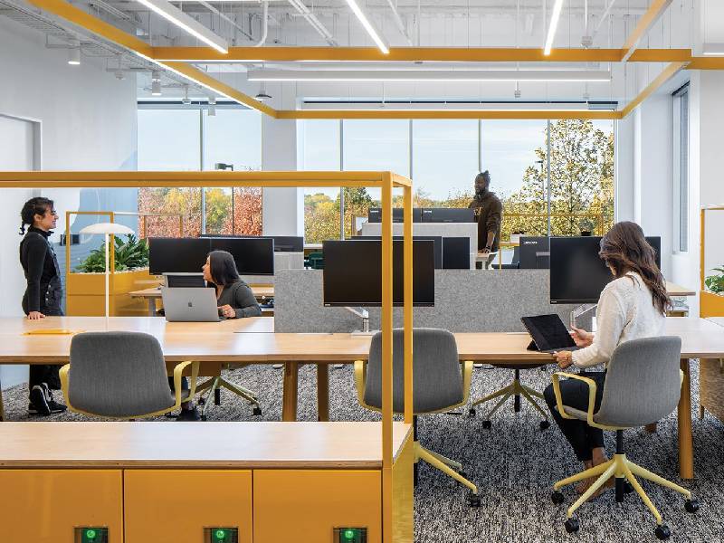 2. Collaborative Spaces: Incorporating collaborative spaces is essential for fostering teamwork and innovation. Redesign areas such as meeting rooms, breakout spaces, and collaborative zones to encourage collaboration and creativity. Provide flexible seating options, writable walls, and integrated technology to support brainstorming sessions, team meetings, and informal discussions.